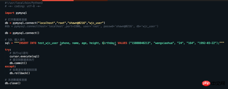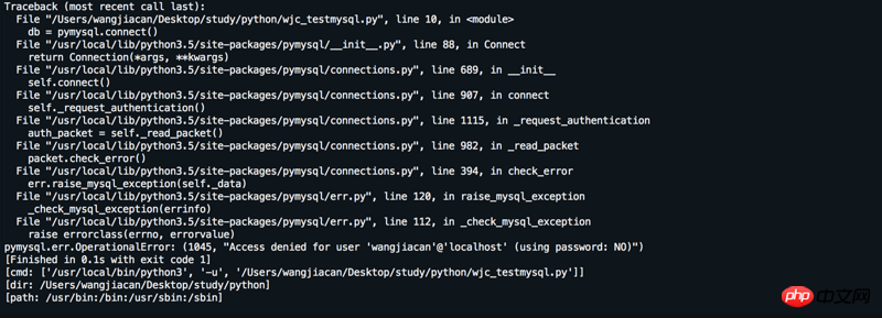 你又跑一次不加参数的connect()干嘛?之所以报错是因为你不填任何参数的时候,默认用你当前的系统用户作为mysql用户,估计你当前系统用户就是wangjiacan