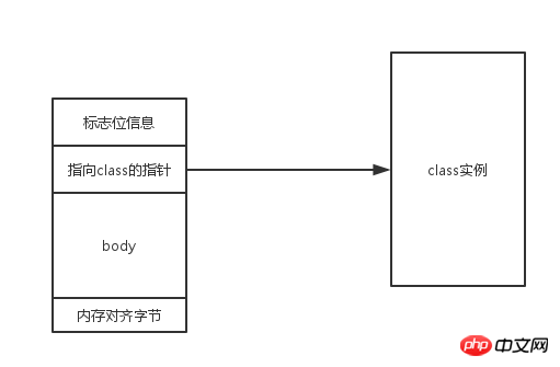 即每个对象实例在 heap 内存中有4部分组成,重点说一下标志位信息(mark word)和 Class 实例指针,标志位信息包括是否有锁,GC 标志位,Youth GC 次数等信息。