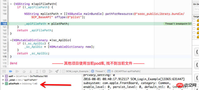 可是当我运行当前项目的时候, pod库中同样位置的代码,却找不到这个plist文件了.
