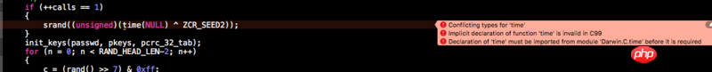 3.更改c的编译标准之后,出现的问题更奇怪,不过更多的是找不到定义的方法,类似:Use of undeclared identifier 'time'。