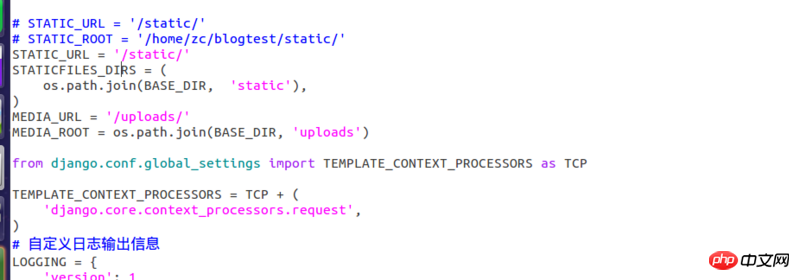 alias /home/zc/blogtest/static; # your Django project's static files - amend as required;
