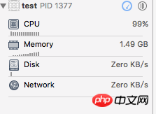 CPU占用为99%。但我想问的问题不是关于CPU的, 而是关于内存的。接下来我稍微改变一下上面的代码:
