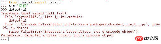 一直被编码问题所困惑,在网上搜索了“如何查看字符编码类型?”,听说chardet模块很方便,但是安装了chardet模块之后,使用一直报错“ValueError: Expected a bytes object, not a unicode object”,不知道什么原因。如下图所示: