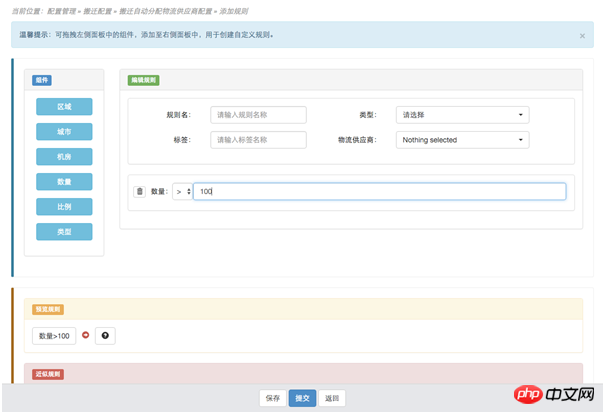 那么我们定义的规则集就可以生成一组的规则集列表,当生成一个订单,用户可以填写一些规则,那么服务端根据传过来的规则,匹配规则列表中的规则,选择出一堆否和条件的规则,然后按照优先考虑不同快递公司,优先某几种规则,来进行匹配相应的规则,进行物流配送。