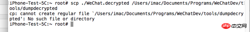 scp root@192.168.0.102:/var/mobile/Containers/Data/Application/8AF94A0F-B6E2-48B6-A1F0-50D0D292111A/Documents/WeChat.decrypted ~/desktop 我恰好也遇到这个问题,我是这样解决的