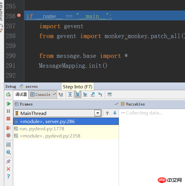 下图是命中断点截图,并且鼠标放在了f7上面,准备点