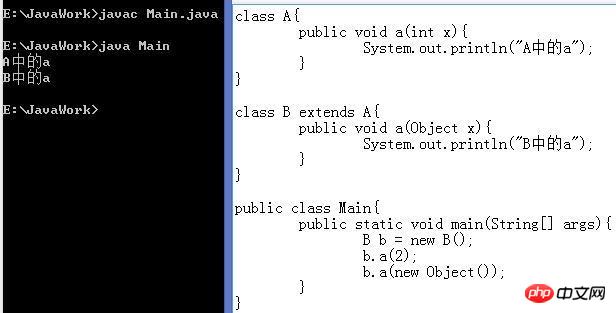 1.首先这不叫覆盖(Override)。类B继承了类A的方法a,且类B定义了一个新的方法a,两个方法参数不同,所以是两个不同的方法。
