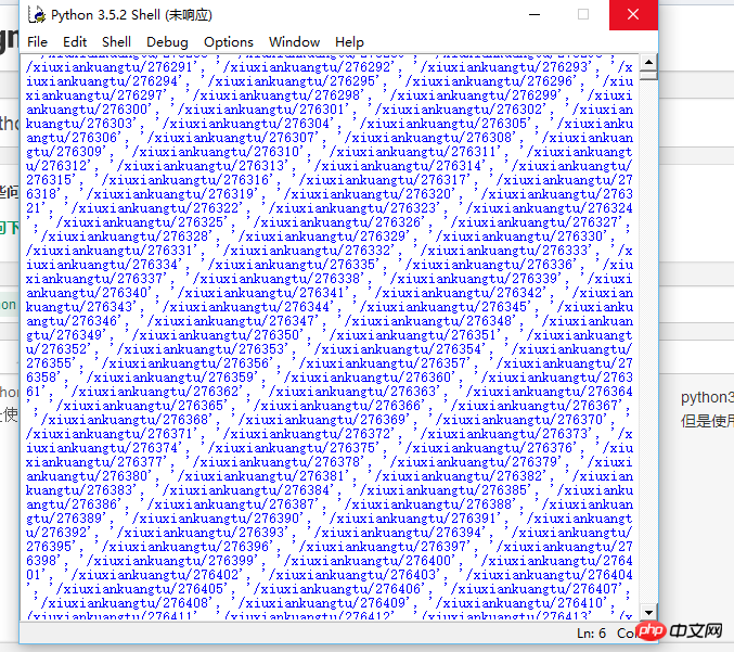 这是 idle 的bug,要显示太多字符时,会卡死。