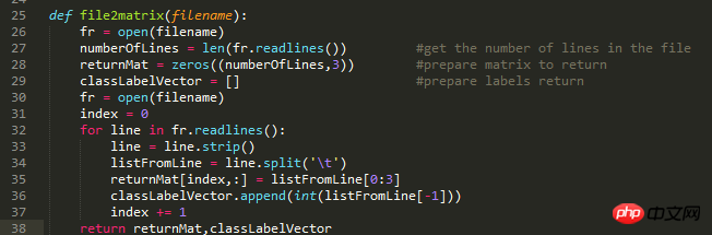 图1是学习到机器学习实战2.2.1节时,knn.py中需要的所有代码。图二是要处理的数据集合,可以看到有4列,行数很多。我的疑问是图三中33行与34行代码,既然用strip函数处理了每行的数据,那每行的空格和分行符都被去掉了,我认为经过33行代码处理后,第一行就变成了409208.3269760.9539523这个样子,这个样子的话split没办法进行划分啊?split是为了将每行中每一列的数据进行分组,保存到列表里,但是为什么不直接用split()去分?即用空格去分。给的数据每行没有制表符/t,为什么要用/t去分?