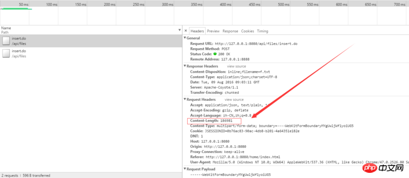 如下图所示:两个上传的文件长度是不一样的