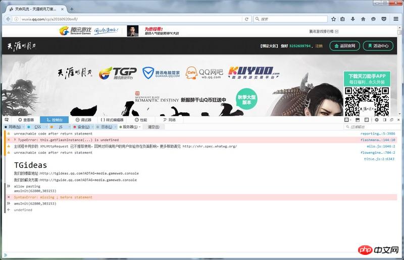 firefox控制台运行 amsInit(62800, 303153); 有效能正常打开选择大区窗口,但会提示未定义,如下: