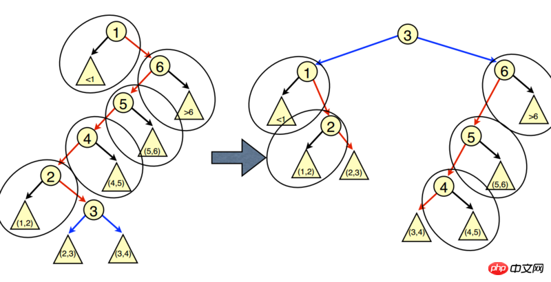 l.right = t,l是指向a的,这个操作也就是a的右节点变成了b,l依然指向a,t依然指向bl = t,l改成指向b,t没变也指向bt = t.right,t原来指向b,那么现在改成指向b的右节点,即b2这么一通下来后a的左节点没变依然是a1,右节点变成b,而a2已经和a断开了。相当于把b这课子树移到了a的右边。