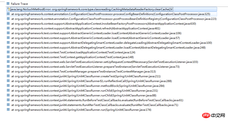使用单元测试junit测试时:报错:java.lang.NoSuchMethodError.org.springframework.core.type.classreading.CachingMetadataReaderFactory.clearCache()v