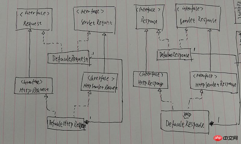 我的DefaultHttpRequest/DefaultHttpResponse是通过装饰器模式持有一个DefaultRequest/DefaultResponse来完成Request,ServletRequest/Response,ServletResponse接口的功能. 然后自己实现HttpRequest,HttpServletRequest/HttpResponse,HttpServletResponse接口的功能;
