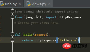 import newproject.views urlpatterns = [ url(r'^index$',newproject.views.hello,name='hello'), ... ]