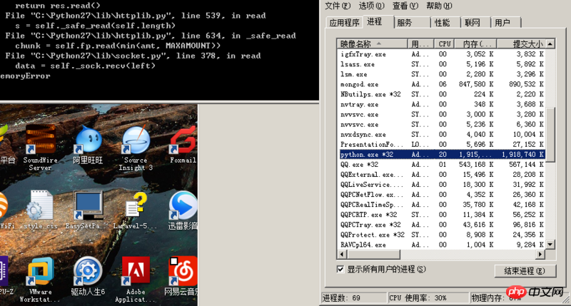 RT,我最近写一个爬虫,需要从一个网站抓取大量数据,先用开启十个线程使用httplib模块从一个list页面中获取大概一百多万条id,塞入一个queue队列中,然后再开十个线程使用httplib模块从刚才那个queue队列中取出id,通过这些id再去一个view页面把正文内容抓取出来写入mongo数据库,但是现在发现只要python进程内存占用达到1.9G之后httplib模块就开始报内存溢出错误,请问这是什么原因?(我现在初步猜测是queue中存了几百万的id数据导致内存占用过多,httplib模块申请不到内存了)有什么办法可以解决吗?(因为访问那个list页面需要带上cookie,所以我才用httplib模块,如果有其他模块可以带上cookie发起请求的话也麻烦告诉我一下),求高人指点,感激不尽