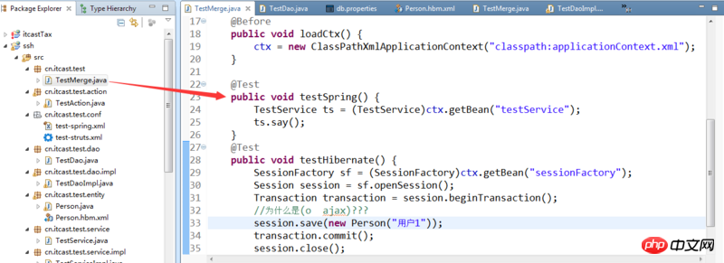 不知道如何去执行testSpring 和testHibernat的方法。