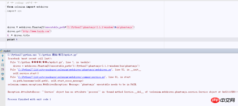 路径那一串字符串前面加一个r,现在字符串里面的b被转义了,或者把phantomJs.exe放到python目录里面.