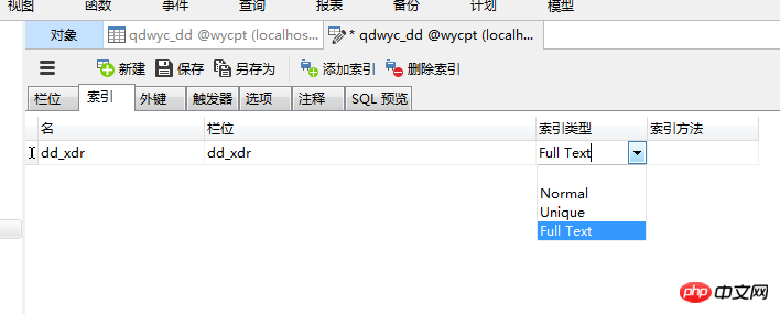 这个是索引类型:normal是普通索引,unique是唯一索引(加了唯一索引的列,会有唯一约束,不能有重复值,否则会插入或更新失败),full text是全文索引,仅对英文字符串有效,对中文是无效的(一般用不到这种索引)。一般情况下,选择normal即可。