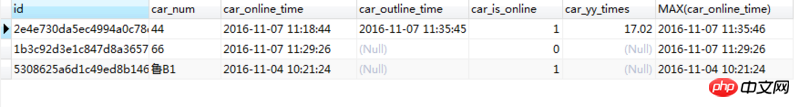 你Group By的是car_num字段,所以实际上是按照car_num来分组的, 按照car_num分组之后: