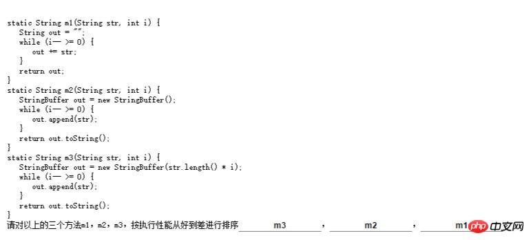 如果变量i的数量小于一定值的话,m1是最快的;当i比较大时,m3比较快;另外,如果不考虑线程安全的话,jdk5之后可以采用StringBuilder。