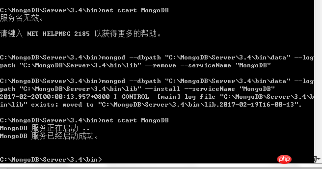 这是在网上找到的粗暴的【解决方法】,先remove serviceName,然后install serviceName,之后mongodb就成功启动了。我不知道为什么这样做可以,请教背后的原理?