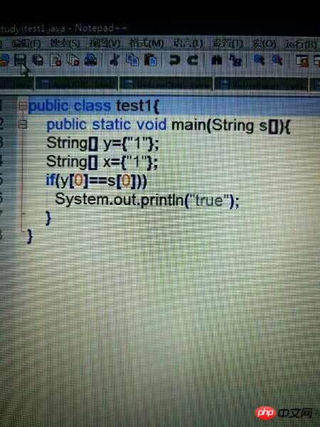 String 重写了equals方法,==比较的是地址,你想要比较值的话要用equals,if(y[0].equals(s[0])),另外,s是从外面传递进来给main方法的参数
