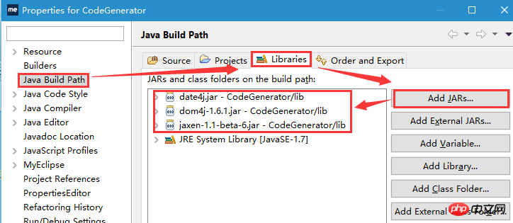 而如果创建普通的Java项目,一般需要自己创建一个lib目录,再将jar包复制到该目录,然后手动将设置添加到Referenced Libraries库(选中项目右击-Properties-Java Build Path-Libraries-Add JARs...),效果如下:
