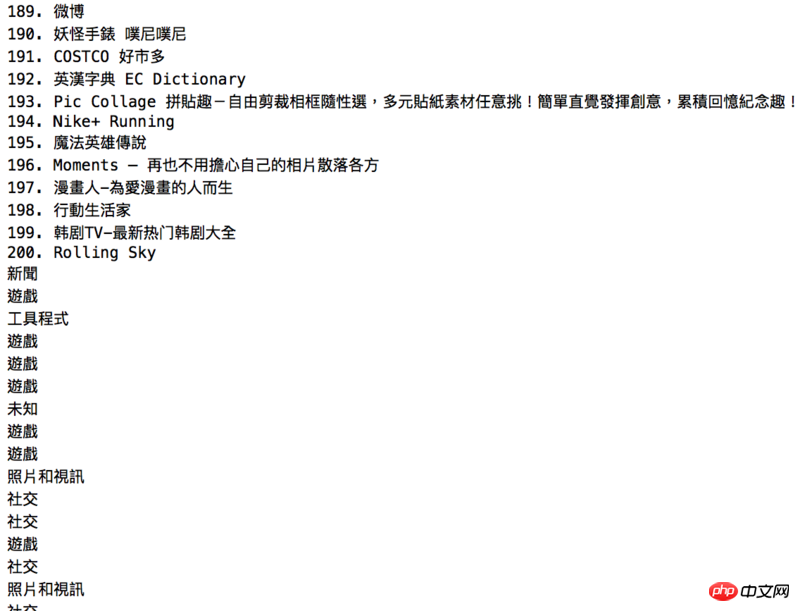 写csv文件简单点 你的结构数据要成这样 [["1. 東森新聞雲","新聞"],["2. 創世黎明(Dawn of world)","遊戲"]]