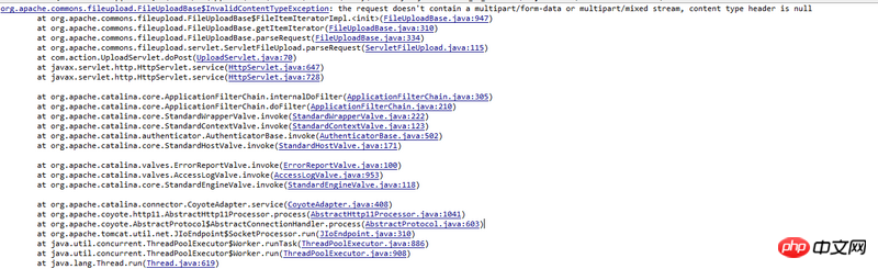the request doesn't contain a multipart/form-data or multipart/mixed stream, content type header is null