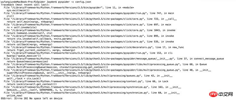 在启动PySpider时报OSError: [Errno 28] No space left on device