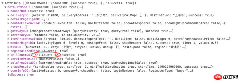 数据直接就在页面上,获取数据就很容易了,关键字"sellCount"。
