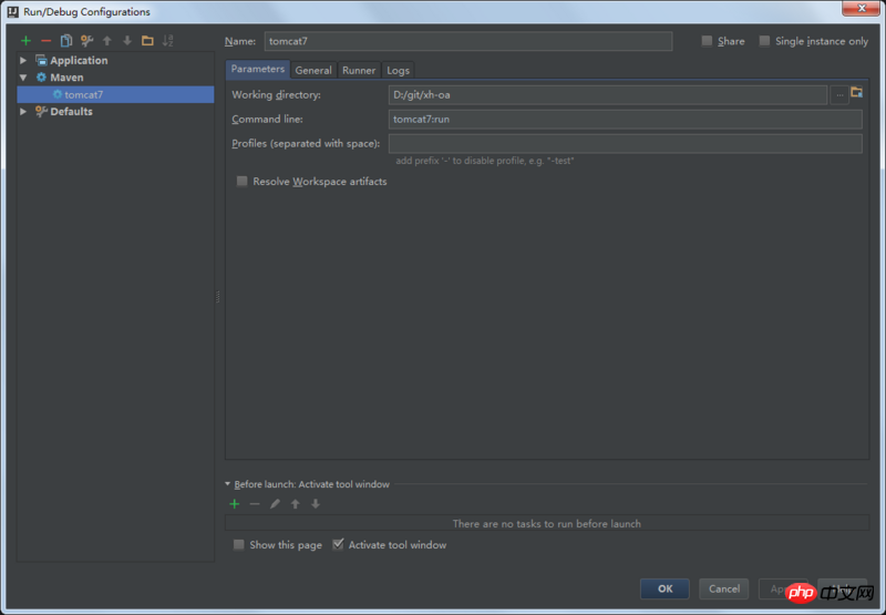你可以用idea自带的tomcat插件来部署,新建一个maven服务器名字叫“tomcat7”,然后对应配置一下Parameters就可以了。如下图: