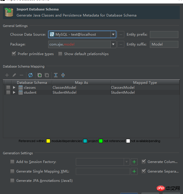 我一般是通过表生成的 可以生成serModel+映射配置文件