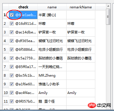 self.friendTable.setItem(i,2, QTableWidgetItem(unicode(friends[i]['RemarkName'])))