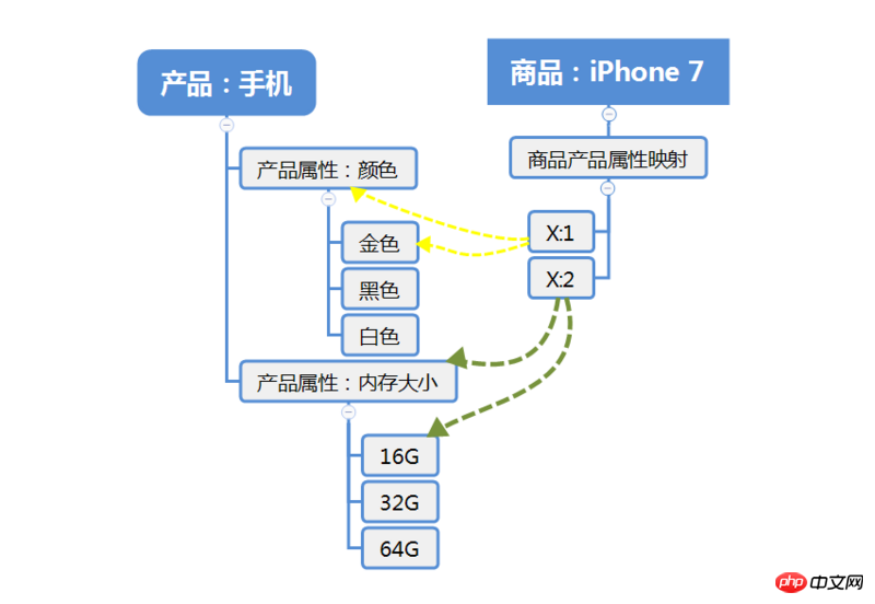 产品属性:选项,而不是产品属性:值,这将利于搜索,例如找金色的iphone将会非常简单和精准,利于数据分析。也不会出现商家上传屎黄色iPhone导致数据混乱的情况产品