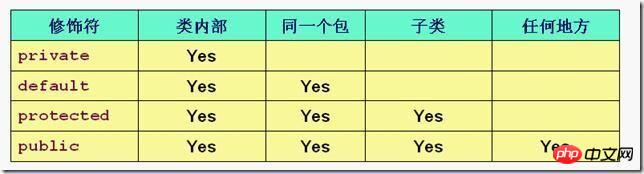 给你这个图片吧。你可以看看,尤其要注意protected与缺省之间的区别。