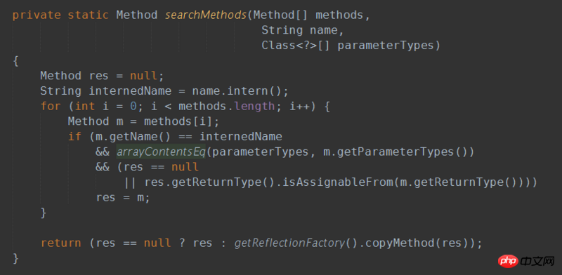 getMethod的源码,getMethod层层调用之后,会使用下面的方法:这个方法中,可以看到有一个