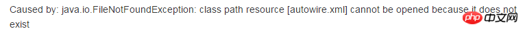 类路径下找不到autowire.xml文件,也就是位置放错了,和applicationContext.xml放一起就行