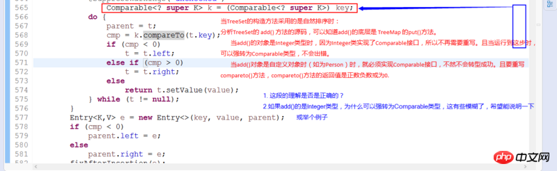 截图红字的理解基本没错但不完全,正如 @jokester 说的,你没把代码贴全,注意第561行 else 前面的部分。实际上,TreeMap<T>或TreeSet<T>,排序依据有两种情况: