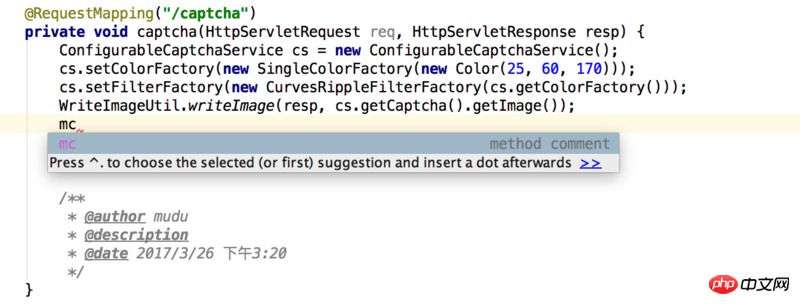 基于这个,可以做很多功能,比如mc补全为方法注释,cc补全为类注释: