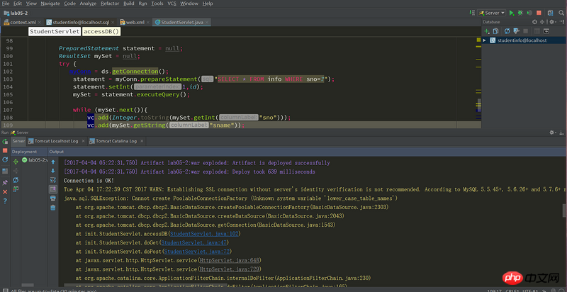 at init.StudentServlet.accessDB(StudentServlet.java:102)