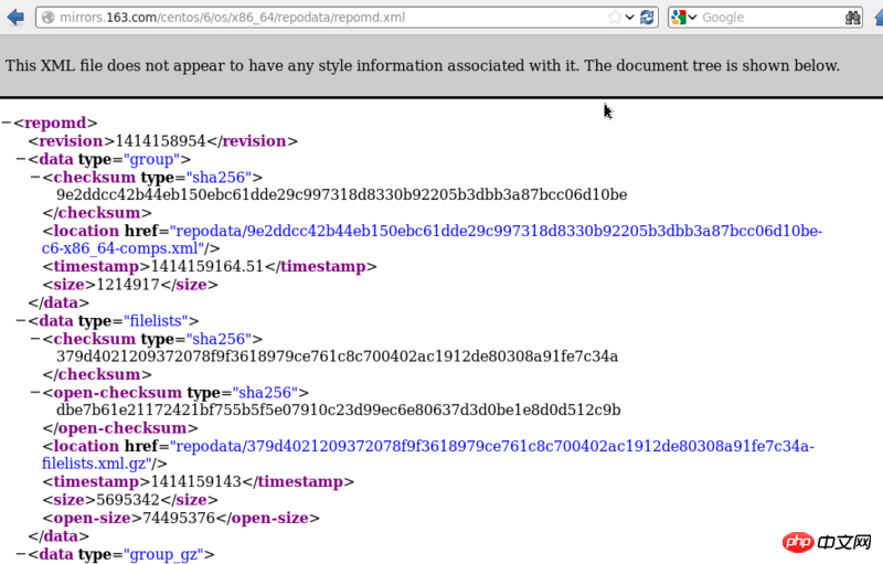 而且http://mirrors.163.com/centos/6/os/x86_64/repodata/repomd.xml是可以通过网页打开的,如下
