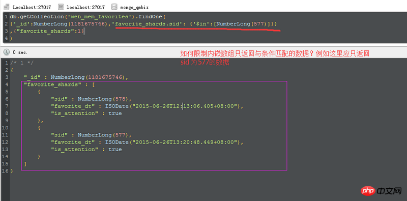 { "_id" : NumberLong(1181675746), "favorite_shards" : [ { "sid" : NumberLong(578), "favorite_dt" : ISODate("2015-06-26T04